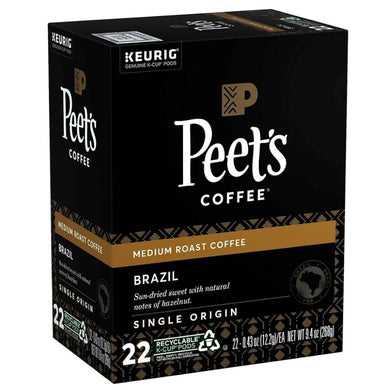 Peet's Coffee Single Origin Brazil, Medium Roast, Keurig K-Cup Coffee Pods, Box of 22 K-cups