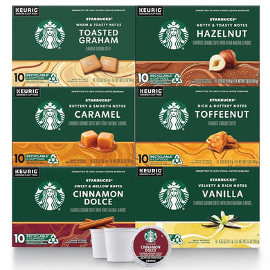 Starbucks Flavored Coffee Variety Pack, Keurig K-Cup Coffee Pods, Box of 60 K-cups