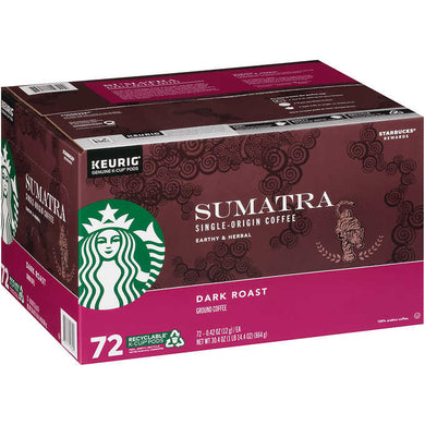Starbucks Sumatra, Dark Roast, Keurig K-Cup Coffee Pods, Box of 72 K-cups