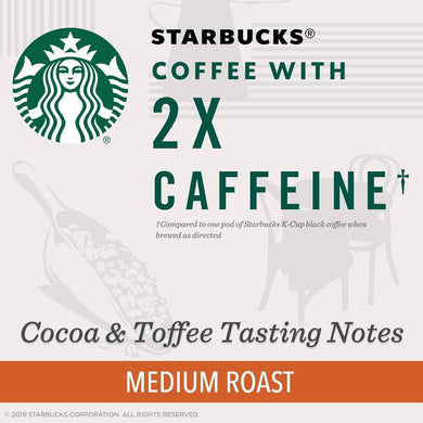 Starbucks 2X Caffeine, Medium Roast, Keurig K-Cup Coffee Pods